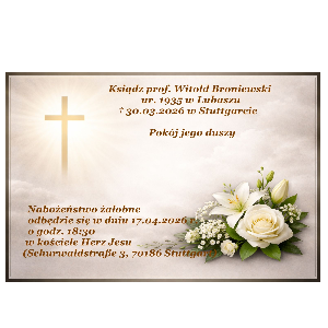 † Ksiądz prof. Witold Broniewski ur. 1935 w Lubaszu † 30.03.2026 w Stuttgarcie